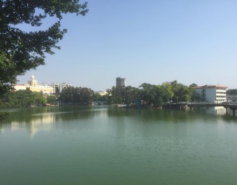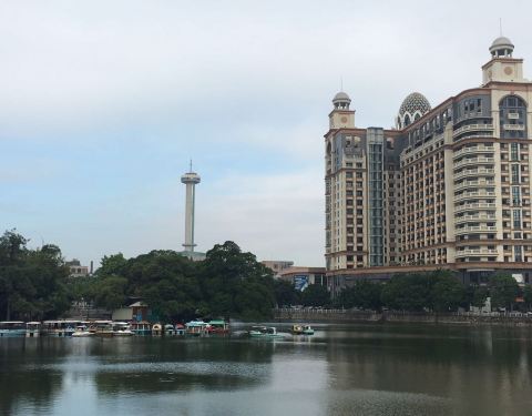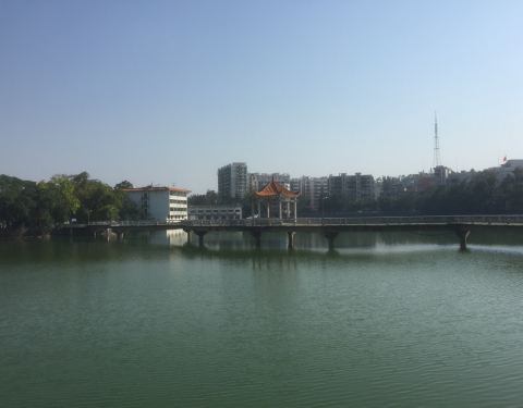 这里也是台山老城区的中心,人工湖被建筑所包围,环境很好,日夜都适合在此散步。水面平静可以泛舟,但似乎不太受欢迎,可以沿着著名的九曲桥走一走。住在湖边的酒店,从高处看湖景很棒。据当地的前辈说,以前人...