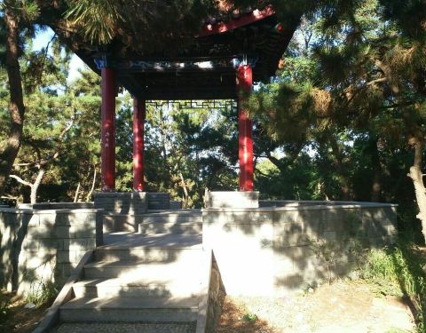 是周边居民休闲健身散步,跳广场舞的好地方,公园内树木比较多,环境优美,站在山顶可以眺望威海市区的街景