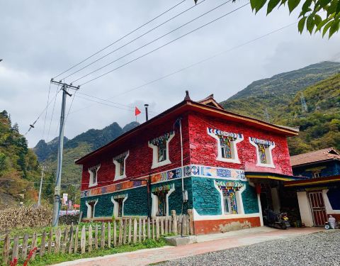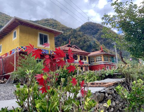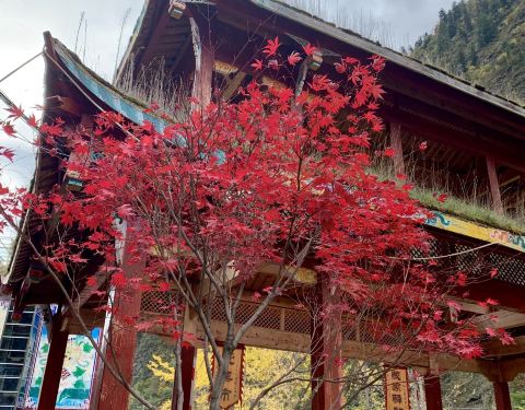 离开黑水县的前的最后一站,彩林和红叶比洛哩措湖更艳丽些,仍然是人工景点,但是在彩林环山的怀抱下,一幢幢色彩缤纷的小屋舍显得格外漂亮,忍不住不停的嚓嚓嚓按动快门。屋舍的一侧有着不知名的红花绿植金色的...