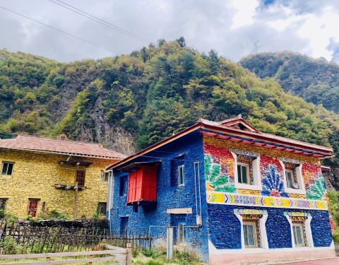 .七彩甲足藏寨位于四川黑水县美丽的彩林核心区,每到秋季,这里五彩缤纷,七彩斑斓,风光旖旎,藏寨的每幢房子外墙全是彩绘的,美丽壮观。