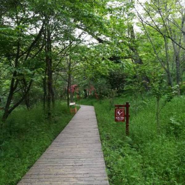 园内还有一段古栈道遗迹。景区面积很大,没有进行大规模的旅游开发,基本保持了原始的自然生态