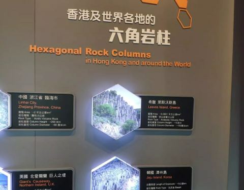 香港火山探知馆在西贡,设有5个展区,一比一的六角形岩柱模型,它是1.4亿年前西贡火山活动形成的...