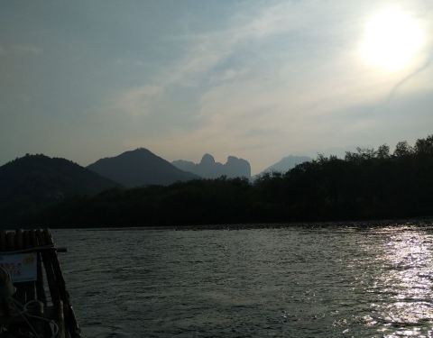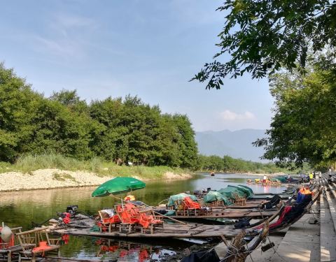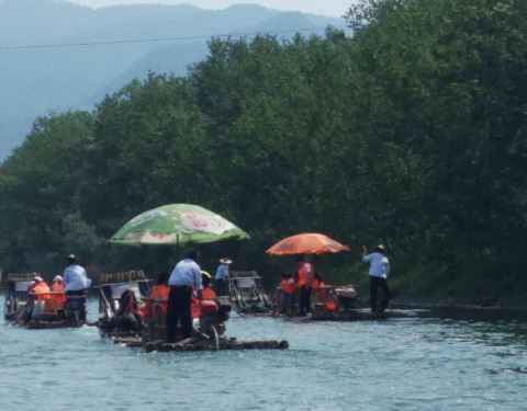 因为没有人和我们一起坐,只能花280元,坐到狮子岩。沿途风景一般,没有阳朔的遇龙河漂流风景好