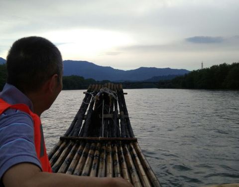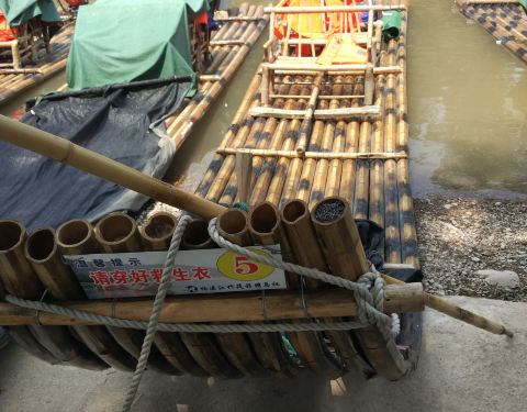 离岩头镇大约800米,我们是下午4点去的,为了避开高峰期和毒辣的日头。码头很简易,1-4人一条竹筏,280元。因为没有人和我们一起坐,只能花280元,坐到狮子岩。大约40分钟。沿途风景一般,没有阳朔的遇龙河漂流风...