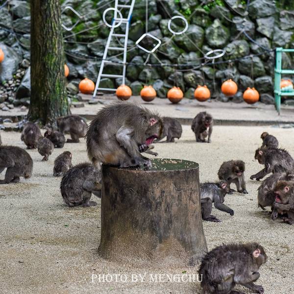 在温泉之乡别府,除了有温泉可以从早泡到晚,还有适合小朋友去玩耍的高崎山自然动物园。 虽然被称作动物园,但是这个动物园中却只有一种动物——猴子,而且是上千只猴子组成的猴群!位于大分市西侧的高崎山,海拔628米,据说从江户时代开始,山上就已经有猴子栖息了。这些野生日本猕猴在这座郁郁葱葱的青山上,繁衍生息,拉帮结伙,壮大族群,却给周边的居民带来了许多困扰。昭和27年,当时的大分市长便在万寿寺别院的协助下,通过喂食开始召集猴子,几经辛苦后,猴子终于愿意聚集而来,并于昭和28年(1953年)设立了高崎山自然动物园。 现在高崎山上栖息着约1300只野生日本猕猴,它们并非人工饲养,也并未进行过驯化,而是在山上无拘无束地自由生长,已然成为了日本最大规模的野生猴子放养动物园。在高崎山脚下,乘坐小猴铁道,朝着猴子王国出发吧!欣赏着美景,不一会就可抵达猴群聚集地。若是体力允许,也不妨沿着盘山路慢慢走上山,路上绿叶蔽日,山间空气清新,有小猴子在林间调皮地嬉戏,不消15分钟就能够攀爬到山顶了。在高崎山上,没有栅栏,游客可以近距离观察猴子们的生活日常。猴子们在园内悠悠哉哉地生活着,神龛、道场、寺庙,到处都是它们的家,至于人类的存在,他们并非习惯也并不好奇,只是懒得搭理视若无物而已。作为人类的“远亲”,你会惊奇地发现猴子们所展现的各种姿态,与人类有着惊人的相似之处!它们三五成群,小猴子们活力满满地玩耍打闹,猴子情侣腻在一起挠痒抓虱子,猴子妈妈或背或抱着小猴子,甚至还会亲昵地亲吻小猴子的额头,老猴子却常常独自坐在一处,眼神放空仿佛早已看淡世事……不止举止神态相似,猴子们也如人类一般过着群居生活,有着自己的小家族大帮派,有着自己的猴群社会。这里的猴群曾经分为3个帮派,后来猴群B和猴群C联手打败了曾经强大的猴群A,从此猴群A便不知消匿去了哪座山头,不见了踪影,好在猴群B和猴群C一直和平共处,友好地分配着这座山上的资源。每隔30分钟,工作人员便会在「サル寄せ場」喂食猴子,这是高崎山上最壮观的场面!数千只猴子从四面八方聚集而来,一直深藏不露的猴王也会出现,且只有它会在树桩上进食,一副唯我独尊俾睨众猴的气势。历史悠久的高崎山还有许多有趣的幸福神话:据说有猴子从胯下钻过就会遇到好事,且数量越多越灵验,所以如果见到岔开双腿一副奇怪站姿的游客千万不要惊讶;山脚下还有一座猴子铜像,据说只要摸摸猴子的头,就能有情人终成眷属……Tips: 地址:大分市神崎3098-1 交通:在別府駅前搭乘巴士“高崎山自然動物園前”,约10分钟车程;在大分駅前搭乘巴士“高崎山自然動物園前”,约20分钟车程 时间:9:30-17:00(入园时间截止至16:00) 门票:成人510円;中小学生250円;幼儿免费(搭乘小猴铁道100円往返) 官网:www.takasakiyama.jp