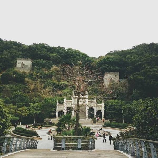 郑成功公园也被称为大坪山公园,因为位于大坪山。烽火台巨大的郑成功雕像位于大坪山的巅峰。他是真的很大去年刚修好的一处空中漫步走道,有骑车的道也有走路的道。 全长是挺长的,反正我没走完。 中间有几处出口的。 有一处玻璃栈道,记得不要穿裙子上去,下面可以看到的,进去要排队。