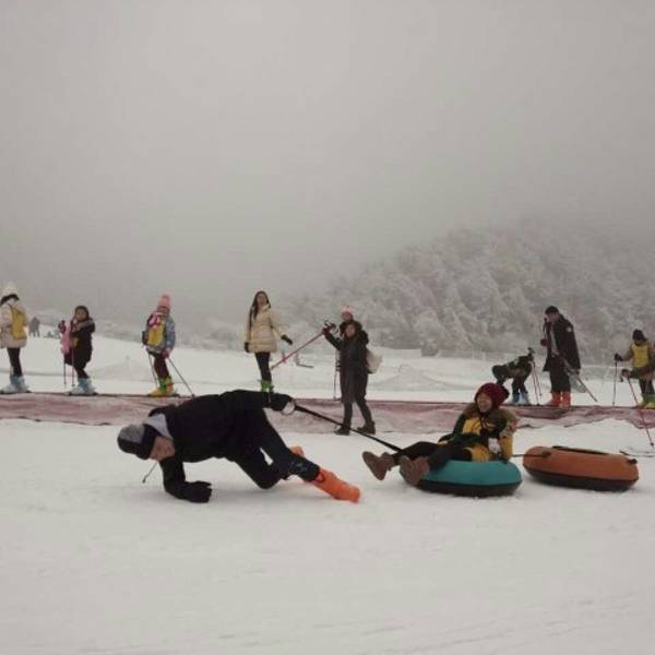我是从奉节县城上去的,一句路况很好,全是沥青路车开的较慢大约2小时到的,一路有很美的风景看到山上很多雪松。原本觉得4岁小孩不会玩滑雪,到时小盆友一定要,穿上后还很快适应划了起来,学的很快,玩的不亦乐乎,乐此不疲都不觉着累,但是大人觉得脚太累老摔跤而且很难爬起来。建议租个轮胎很刺激,大小朋友都可以玩!总之值得去玩,天然雪场!