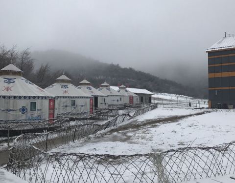 到达目的地是茅草坝滑雪场,已经被笼罩在大雾中,但是我们这次因为天气原因并没有体验到滑雪,心里多多少少有点遗憾,希望有机会能弥补一下,再去一次。茅草坝滑雪场位于 奉节 县 兴隆 镇旅游环线(天鹅池路段),于2015年正式纳客,平均每年接待50余万人。滑雪场由雪具大厅、雪道、戏雪区以及水池,道路等配套设施共同组成。滑雪道分为初级道、中级道、雪圈道、戏雪区。初级道设有进口魔毯,能让初学者尽情体验滑雪乐趣。