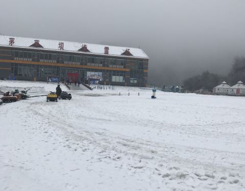 有两年没有在 重庆 看到雪了吧,上一次主城下雪,还是两年前,这次知道能看雪,心里已经雀跃欢呼了。坐着有防滑功能的大巴一路上山而去,银装素裹的世界也太美了,树林间有些树木还没有完全被雪淹没,薄薄撒了一层,是一种别样的美。 到达目的地是茅草坝滑雪场,已经被笼罩在大雾中,但是我们这次因为天气原因并没有体验到滑雪,心里多多少少有点遗憾,希望有机会能弥补一下,再去一次。茅草坝滑雪场位于 奉节 县 兴隆 镇旅游环线(天鹅池路段),于2015年正式纳客,平均每年接待50余万人。滑雪场由雪具大厅、雪道、戏雪区以及水池,道路等配套设施共同组成。滑雪道分为初级道、中级道、雪圈道、戏雪区。初级道设有进口魔毯,能让初学者尽情体验滑雪乐趣。 天气好的时候,可以带上家人一起来体验一下滑雪,毕竟在南方,这项运动还是很少接触到的,值得去尝试。游客们在滑雪体验结束后还可以在雪具大厅二楼用餐,我们去的那天太冷了,到了之后就先去餐厅喝了一点暖身子的姜汤,回复一下体温。