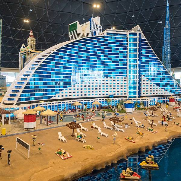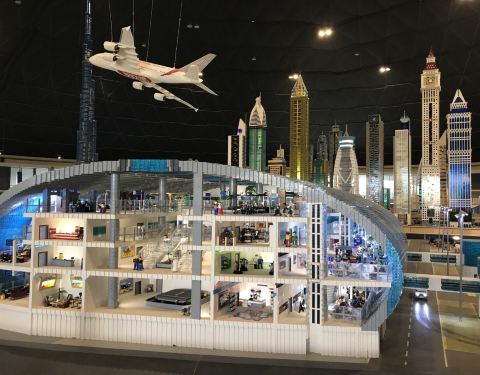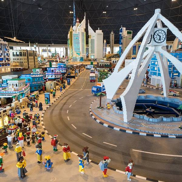 世纪钟的完美还原,让我们一瞬间就认出来这是美丽的 迪拜 。真的太惊艳了。这也是全球第七家乐高主题乐园今天来到了乐高乐园, 迪拜 的乐高主题乐园是坐落于 迪拜 通往 阿布扎比 路上的一片娱乐区里,因此我们来到这几乎就滴答 阿布扎比 了哦!从这个小镇进入,往里走,就可以看到大门。这座乐园2016年底才正式开业,...今天来到了乐高乐园, 迪拜 的乐高主题乐园是坐落于 迪拜 通往 阿布扎比 路上的一片娱乐区里,因此我们来到这几乎就滴答 阿布扎比 了哦!从这个小镇进入,往里走,就可以看到大门。这座乐园2016年底才正式开业,依然非常崭新。这也是全球第七家乐高主题乐园。该乐园拥有6个主题园区和超过40个互动游乐设施,园内共使用超过6000万块乐高积木拼装了约15000个建筑造型。乐园的开放又让 迪拜 多了一种新玩法。带着小孩子的那种兴奋之情,我们整装待发来这里玩!合完影就开打,说好的团结友爱呢?在像素的世界里,一切解构很乐高!看到小朋友的面具,小伙伴也应景买了个蝙蝠侠。过了玩具店,第一个引入眼帘的是乐高积木搭成的 迪拜 知名建筑,Miniland。这里是整座 迪拜 乐高主题乐园的心脏,也是最不可错过的地方。