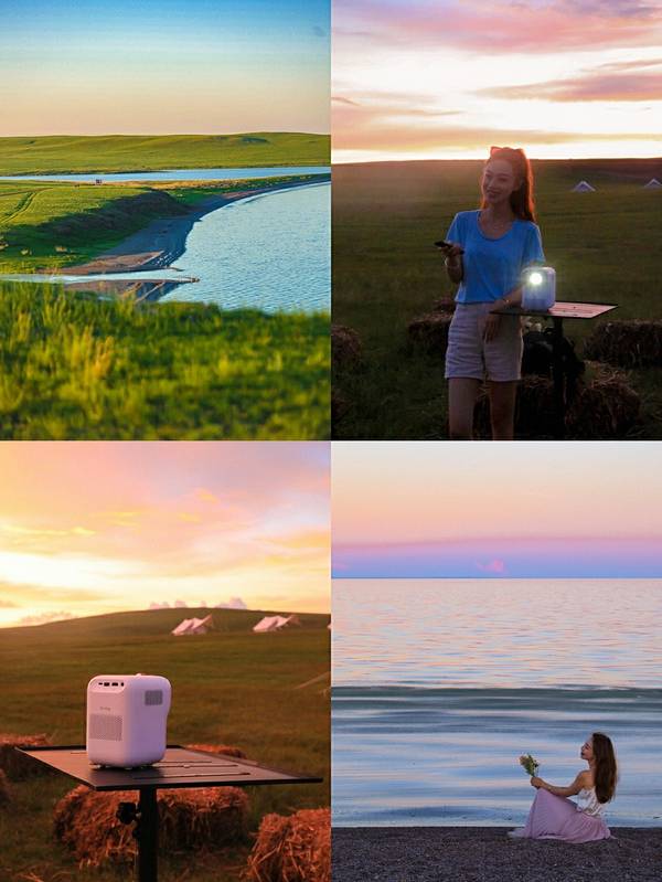 等到夜色缓缓降下帷幕,搭上天幕,再断崖最顶端露营⛺️,和姐妹看一场露天电影🎬我们带的小明q1,携带方便,续航能力不错,分辨率还高!简直不要太惬意!这才是一直想追寻的生活呀,不用接电源就能播放,走到哪里都是电影院🎦,我在世界尽头看了一场露天电影。