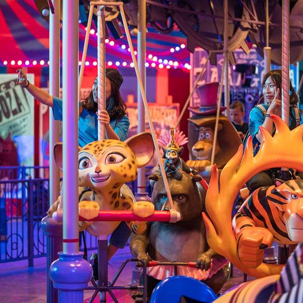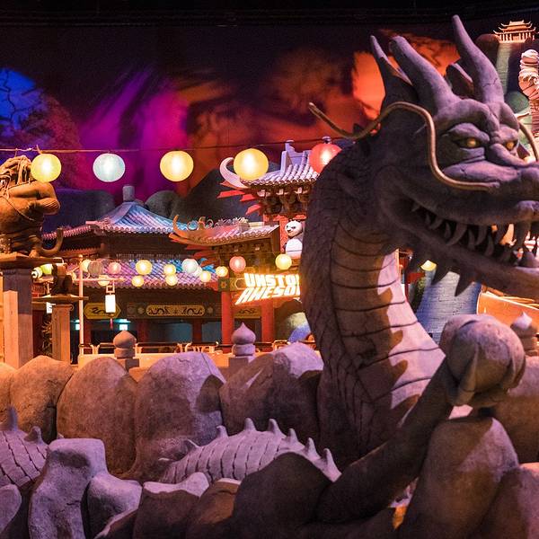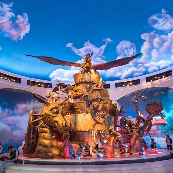 摸起来也特别有猫的质感,可见乐园是真的花下重本了,就连细节也面面俱到,希望给游客最好的观赏体验继续往前走,穿过一座桥就来到了电影之门。当我到达动漫之门的入口,已然被眼前的宏伟建筑所经验,不愧是一座按照 好莱坞 模式打造的全新主题乐园,也是 中东 地区最大的主题乐园, 好莱坞 三大巨头——梦工厂、...继续往前走,穿过一座桥就来到了电影之门。当我到达动漫之门的入口,已然被眼前的宏伟建筑所经验,不愧是一座按照 好莱坞 模式打造的全新主题乐园,也是 中东 地区最大的主题乐园, 好莱坞 三大巨头——梦工厂、索尼电影制片和狮门影业加盟合作,让人们重温一场 好莱坞 的经典。入口处的喷泉搭配奇幻风格的建筑,好像打开了新世界的大门,置身于一场漫长却又经典的电影中。怀着无比激动的心情,一路往里走,看到了一个转盘,对应着四个方向不同的内容,分别是梦工厂、 好莱坞 、 哥伦比亚 、蓝精灵乐园,还有一个宝莱坞。电影风格的游乐设施、景点和表演将以为公园专门创作的独特故事情节、多媒体和叙事为特色。想和“功夫熊猫”一起比试武功,乘坐《驯龙高手》主题过山车,见到怪物史莱克吗?直奔梦工厂,这些都能实现了!梦工厂的奇妙世界有4个主题区,令人尖叫的角色人物,还有多个暖人心的故事,都在以热门电影《功夫熊猫》、《驯龙高手》、《 马达加斯加 》和《怪物史莱克》为灵感建设的梦工厂区主题岛。作为一个电影爱好者,梦工厂真的是是最温暖的地方。功夫熊猫已经成为了我心中最可爱的电影卡通人物,憨态可掬的模样让我们忍不住冲上去合照。穿过几个电影里的卡通人物之后,我们来到了梦工厂的大厅。大厅的建筑还有色彩可谓是完美呈现了“天马行空”,正式将梦工厂的主题拉开序幕,可爱而又梦幻的场景让人恨不得立刻进去一探究竟。永远不要小看一个热爱旅行的大叔,只要有一颗永远热血年轻的心,来乐园也能找到无穷的乐趣!梦工厂里面按不同的电影主题进行装饰,分割成一个个连续的房间,每个房间都将自己的电影主题诠释到淋漓尽致,首先映入眼帘的是功夫熊猫的主题房间,门口可以说是非常气派了。大蛟龙出现了,一双眼睛貌似发光了,斜睨着我们。功夫熊猫与他的小伙伴们风风火火隆重出场,放佛打开大门在迎接我们:来啊,我喊你一声你敢答应吗?再往里走是一个休息区,玩了一上午的我们体力也需要得到补充,先在这里吃点东西,边吃还可以边欣赏 马达加斯加 企鹅们的表演,可爱的企鹅们是表演中最亮眼的元素,还有小孩子们上去互动,当真是充满童趣的表演。不要以为休息完就结束了,再往里居然还藏着一个迷你游乐场!麻雀虽小,五脏却十分精致,这里的“旋转木马”是各种可爱的动物,坐在动物上面一圈圈转着,好想回到了最天真的小时候。最右边的mad pursuit,是全乐园最快的过山车,不来体验一次,等于没有到过电影之城!在这里,可以身临其境感受 马达加斯加 的狂野动物追逐赛。一开始坐上去或许完全没有预料,突然间强大的推背感,平地极速的推背感啊!整个人都飞出去了,魂还跟不上!推动你在伸手不见五指的黑暗里穿行,跌宕起伏,刺激的令人尖叫。在mad pursuit 刺激的惊吓过后,来到了另一个主题房间。在门口看到了《穿靴子的猫》,扮演者特别有天分,傲娇的神情惟妙惟肖。摸起来也特别有猫的质感,可见乐园是真的花下重本了,就连细节也面面俱到,希望给游客最好的观赏体验。接下来是我最喜欢的一个项目:史瑞克的奇幻旅程!名为“精灵之旅”(Merry Fairy Tale Journey)的设施,你将置身于黑暗中,重访电影中史瑞克和费奥娜公主当初相遇的场景。