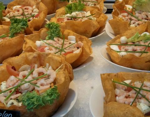 市场是开放式的,没有特别规矩的建筑布局,不宽的马路两边的广场上灵活的布置了些屋子、大蓬和展示架。大块的芝士等待切割,海鲜被精心的厨师处理过后摆在厨窗后面被观赏,花店外面整齐的落着繁多鲜艳的花草,不知名头的各色蔬菜让我驻足研究了很久!