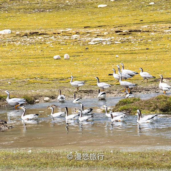 在一个上坡路上,突然闪现出一群奔跑的身影,看着那醒目的白色桃型屁股,我大喊白屁股,藏原羚!大家的镜头纷纷伸出了窗外。只见那群警醒的家伙一边跑一边回头望,直到确认安全了,这才站在原地瞅着我们这车不速之客。辞别了白屁股之后,我们继续颠簸着前进。走着走着,窗边有一个肥硕的身影穿过,定睛一看,好家伙,好肥一只藏狐呢。只见他披着灰白和土黄相间的皮毛,尾巴短而蓬松。他一边走着还不忘回头看看我们,hi,哥们,你的好奇心咋比我们还强呢?还沉浸在藏狐的表情包里,只听前方“扑哧、扑哧”一声响,往前一望,天哪,水池边一群水禽,有说鹅的,有说鸭子……回来一查,不是鹅也不是鸭,竟然是可以飞越珠峰的英雄鸟,学名斑头雁,因头顶有两道黑色带斑而得名。别看斑头雁有些笨拙,还经常鬼混在黑颈鹤和鸭群里,人家这叫有实力的低调。你可知斑头雁飞行高度可达九千多米,每逢迁徙季节,斑头雁会成群结队飞越珠穆朗玛峰……妥妥的真英雄!在连续看了藏原羚、藏狐、斑头雁之后,路况是越来越差了,土路快速退却,取而代之的是碎石路,西装哥恨不得脑门上长满眼睛,好找其中最好走的路,以此来减轻我们的颠簸之苦。走着走着,一条河挡住了我们的路,四处打量一番,要过去还必须先过河。在一阵阵加油声中,我们的霸道在河面开出了一条路来,霸道果然够霸道。过了河再往前走,前方的雪山越来越真切,起初还是藏匿在厚如棉絮的云层里,慢慢的露出了她雪白的肌肤,这番景象太辣眼睛,即使带着墨镜,眼睛也还是会受刺激。路边有一个小水滩,跑过去一看, 简直美得不舍离开,天空之镜来一个。沿着被车压出来的一条土路继续奔驰,越来越靠近冰舌,内心是万分的憧憬和激动。这感觉就像一位火急火燎的男子,将要去远方迎娶他的新娘。车子不能进到冰川面前,需要下来徒步走很远。西装哥为了让我们少走些路,直接往石头上面跑,一直把车开到了另一个山坡下面,从这里爬上去就可以看到40冰川全貌。气喘吁吁爬上来,当冰舌和冰川一一呈现在眼前时,说实话,其实些失望。这和想象中的蓝色冰块,冰清玉洁有着巨大的落差。但你又不得不承认,这冰川是那样的气势磅礴,尽管距离比较遥远,其气势锐不可当。由于来得不是最好的季节,我们放弃了走进冰川的想法,就把念想留在某年的冬季吧,是的,大约在冬季,希望不要太遥远!实用信息