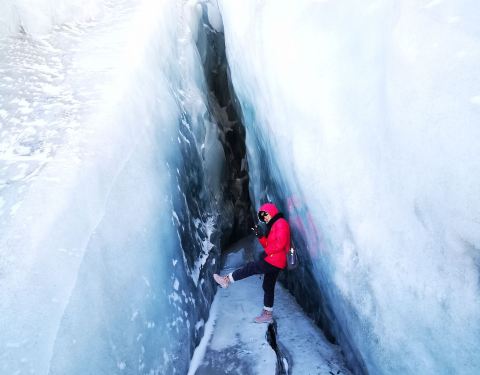 冰川非常高大,有五六层楼高。游客能直接接触到的最雄伟的大陆冰川游客能直接接触到的最雄伟的大陆冰川。冰川前有两个冰湖,一大一小,小冰湖与冰川直接连在一起。冰川非常高大,有五六层楼高。阳光下冰川显出一种非常幽深的蓝色,拍照很漂亮,颜色鲜艳的衣服在这里很适合拍照。