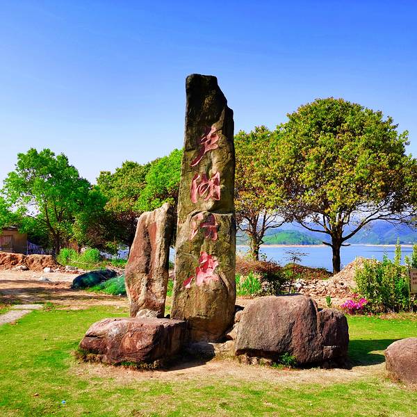卢湖其实是一座当地的饮用水库,它地处天目山余脉旁, 从市区开车过来大约需要15分钟。 初来卢湖,免不了会把它与其他湖泊做个对比, 脑子里一闪而过的是泸沽湖,还有离此不远的千岛湖。 乍一看,卢湖还真有几分千岛湖的姿态!那么问题来了,你认识这块石头的后两个字吗? 我和伙伴们研究了半天,最终决定将不认识的字一律称之为“卢湖活鱼”。我沿着大坝一路向西漫步,看见了许多在此晨练的人们, 心里在想,这就是生活啊,他们听到的可都是鸟鸣声,而不是鸣笛声。 卢湖的面积究竟有多大,我不得而知,但我站在大坝上远眺远方, 不断地思考着:卢湖究竟吃了多少大自然的DNA?由于开放的地点有限,普通游客没有办法进入湖内部 我在湖边的大坝上让盆友给我来了一张极富经典的游客照 希望下次再来时,我有机会可以进去,或者看看“卢湖活鱼”? ✔门票: 免费 ✔地址:宣城市广德市032县道附近