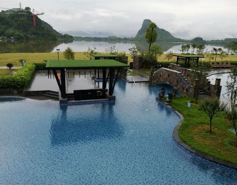 不过觉得性价比,有待提高。酒店挺新的,装修建筑也挺好的,就在宝晶宫旁边酒店挺新的,装修建筑也挺好的,就在宝晶宫旁边。前面有一个大湖,也就是天鹅湖。 处在山清水秀之间,倒也是挺休闲的一个地方。 不过觉得性价比,有待提高。