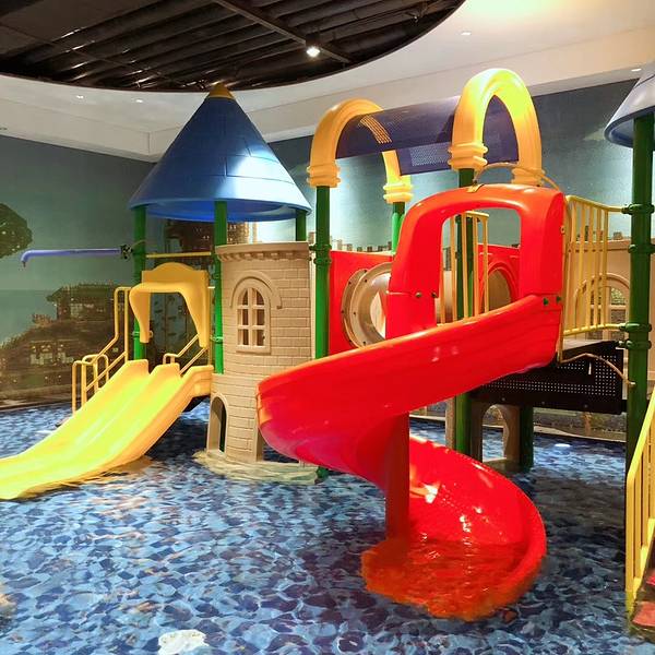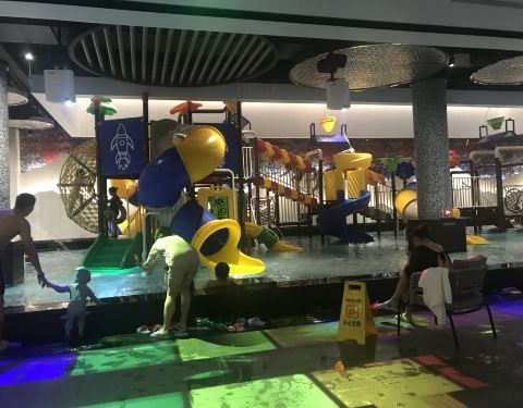 ...适合带孩子来,淘气堡不错,环境也好,干净,毕竟是新开的,三楼以上是酒店,不推荐温泉房,床比较硬