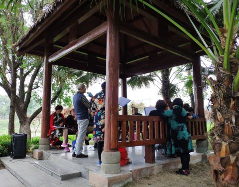 环境很不错,适合锻炼做一些有氧运动,设备还算齐全,男女老少都很喜欢到这休闲锻炼戏耍!还有一些老年人在下象棋,看见他们谈笑风生融洽在这样的环境!