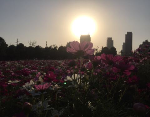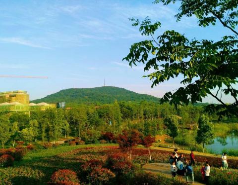 城市区域比较开阔的地方,周围目前高楼不多,有山包,有水域,有各种花草,适合散步