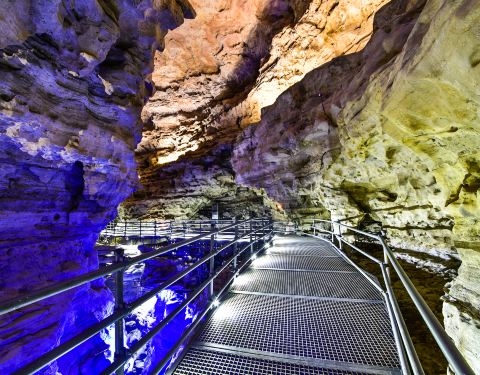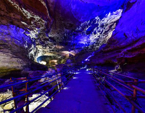 目前景区主要由三部分组成,一是洞内地下峡谷大裂缝,窄的地方也就半米,也有地质上所谓的竖井,太深...这是我所去过最长的溶洞,据说开发的只是其中一小部分,号称世界最长的!目前景区主要由三部分组成,一是洞内地下峡谷大裂缝,窄的地方也就半米,也有地质上所谓的竖井,太深了,沿着铺好的金属板参观,恐吓高的...这是我所去过最长的溶洞,据说开发的只是其中一小部分,号称世界最长的!目前景区主要由三部分组成,一是洞内地下峡谷大裂缝,窄的地方也就半米,也有地质上所谓的竖井,太深了,沿着铺好的金属板参观,恐吓高的我心率加快,就没敢往脚下多看。第二部分是灯光装饰的熔岩,规模不是很大,但非常漂亮。这两部分之间有挺长的洞内路,需坐电瓶车,在洞内高速的拐来拐去,挺刺激的!最后回到山洞入口是不走回头路的,需要爬点山,还好不是太累! 展开