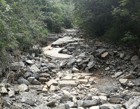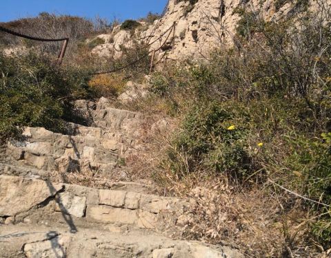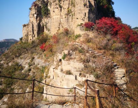 刚入大门转了几个景点后感觉挺失望,没有什么特别的景色,而且好几个景点都是在装修中。正怀着白走一趟的心情前进时,本以为没路了,索性试探前行,当步入幽谷才豁然开朗,环境优美,人迹罕至。行在幽谷中,心灵得到彻底释放,再向前是盘山台阶,一步步向上,心情特别舒畅,唯一不足之处是下山的长城段,感觉台阶修建不合理修建不合理,要不就太高,要不就太长迈步太大,下台阶直接累挺了。不过总体感觉还是很棒的。