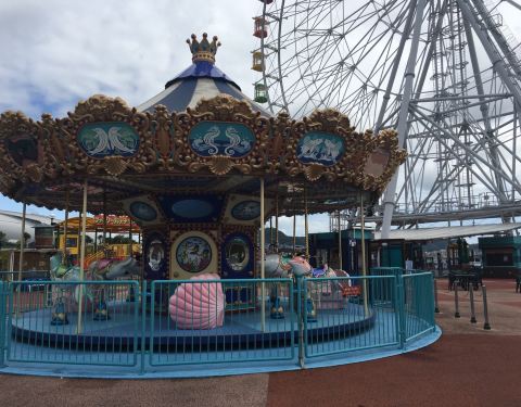在山口的一家开了没有几年的游乐场。最惹眼也是大老远就能看到它的摩天轮在那里转啊转的。里面还有旋转木马,还有一些适合小朋友玩的东西,基本也可以泡一天
