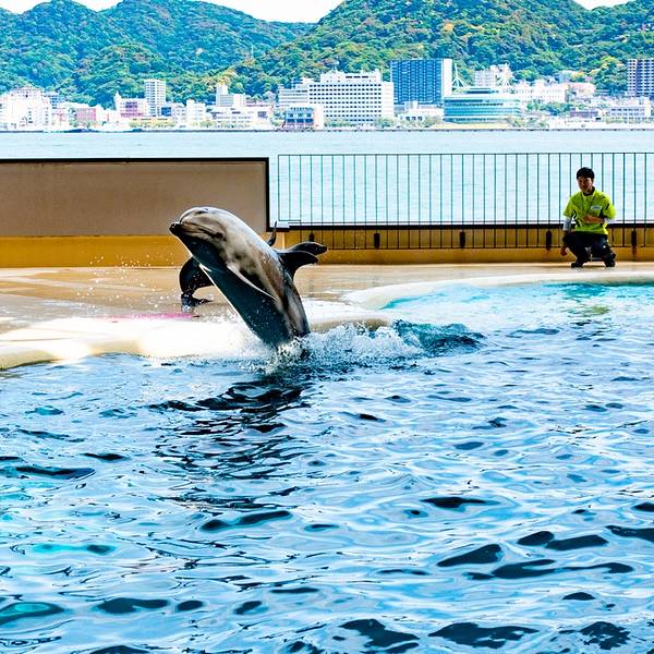 "海响馆"是下关唐户地区的著名海洋馆,超大的拱形水槽让人们近距离接触海洋中的可爱生物,还有海豚、海狮表演和憨态可掬的企鹅。对海洋馆情有独钟的我来说,海响馆必须去!大人门票2000日元,中小学生只要900日元...