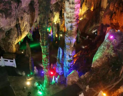 贵阳附近有个盘龙洞旅游区,这是个天然溶洞景区!来到这里,从洞口进入溶洞,一派溶洞风光,灯火阑珊处是各种钟乳石,非常值得参观!
