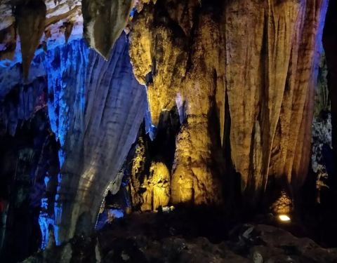 离贵阳市不远有个盘龙洞景区,这个溶洞非常不错!洞内钟乳石很多,历经常年的水滴石穿形成了如此壮丽的溶洞风光!盘龙洞门票很便宜,值得推荐!