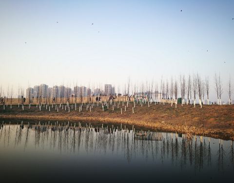 ...宽阔,过草坪往水边走,有树林、芦苇,岸边有很多人钓鱼,放风筝、野炊,怡然自得,整个景区不要门票