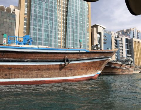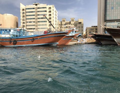 迪拜河真的一定要来一下,从老城区这边的码头有轮渡可以到对面博物馆那边,一趟3AED。 迪拜河的水真的太蓝的,水面上还有一群海欧飞来飞去。感觉非常惬意。晚上也有观光的船,感兴趣的可以去尝试一下,迪拜的夜景还是很美的。