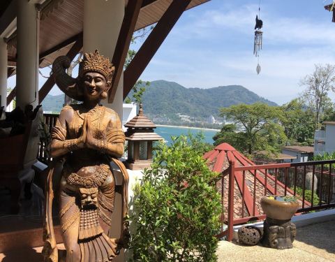 走进这个古老的泰式别墅,首先被这里的景色吸引。蓝天白云下,广阔的芭东海湾一览无余。建筑透露着年代的沧桑感,所有的装饰都是质朴和古色古香的,同时又被鲜花绿树环绕着,散发出一股浓浓的泰式风情。屋檐上悬...