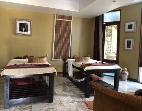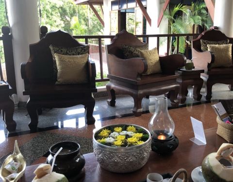 走进这个古老的泰式别墅,首先被这里的景色吸引。蓝天白云下,广阔的芭东海湾一览无余。建筑透露着年代的沧桑感,所有的装饰都是质朴和古色古香的,同时又被鲜花绿树环绕着,散发出一股浓浓的泰式风情。屋檐上悬挂的风铃随风飘荡,奏出悠扬悦耳的音乐,顿时让人心旷神怡!两个小时的精油按摩无比惬意,按摩师虽然没法用英语交流,但是能真真切切的感受到她服务的用心和真诚。最后在通透的大厅里喝个清凉的椰子水,微风拂面,不禁感叹生活是如此的美好!