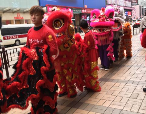 来香港跨年,正好赶上了一年一度的香港龙狮节,非常有传统气息,敲锣打鼓,非常热闹,老人孩子都有舞狮舞龙的。在尖沙咀附近的街道上