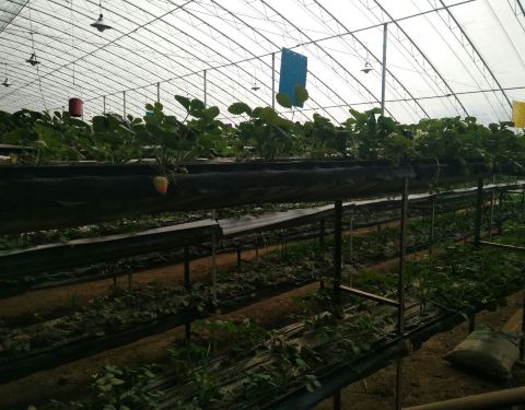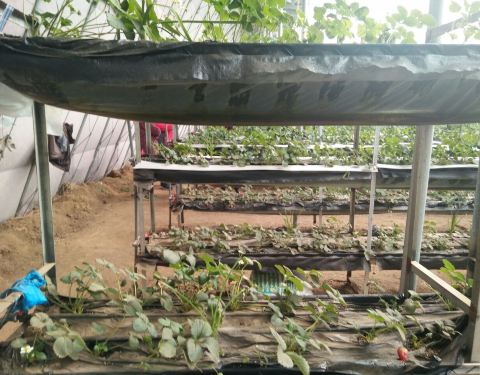 来买盆景可以,地方偏小,几处大棚,花并不多。附近可以采摘草莓。