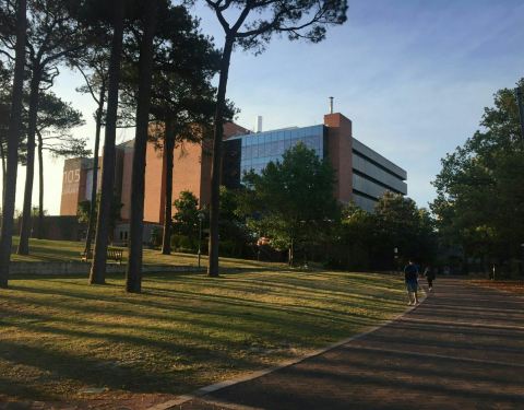 大学面积超级的大,数十栋教学楼形态各异,散布在5平公里的大学校园内,大学各学院之间有交通车来往...