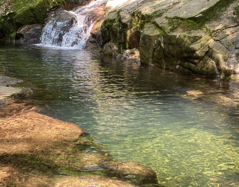 景色很单一,就是石头,小溪还有绿树。但是找块石头坐着看看书也很不错,偶尔有凉风吹过,分外惬意。就是有时候会有蜜蜂,和小飞虫。