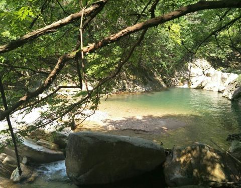 景色很单一,就是石头,小溪还有绿树。但是找块石头坐着看看书也很不错,偶尔有凉风吹过,分外惬意