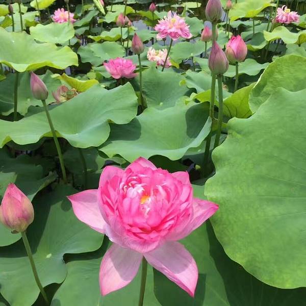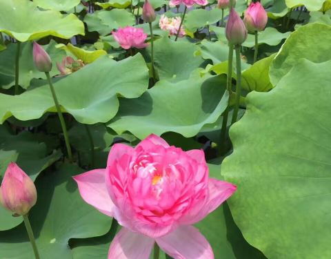 景色怡人,空气也清新,这段时间荷花开得非常美,而且有各种颜色的荷花