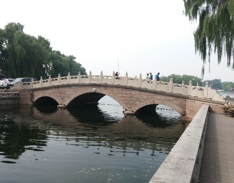 1、什刹海由前海、后海和西海组成,金锭桥位于什刹海前海东岸的出水口,万宁桥(地安门桥、后门桥)的西边。 2、“金锭桥”是21世纪初新修筑的汉白玉三孔石桥,它的修筑完全是为了往来行人的方便。3、站在桥上极目西望,但见什刹海波光潋滟,微风拂来,清新而略带湿润的空气沁人心肺,微波拥来,水声涛涛,岸线蜿蜒,垂柳依依。实在是让人心旷神怡,流连忘返。 4、有杨柳的季节,站在金锭桥上环顾湖边景色,犹如身陷江南胡泊之上。 5、金锭桥所在地:北京什刹海东岸的出水口处;开放时间:全天开放;收费:免费。