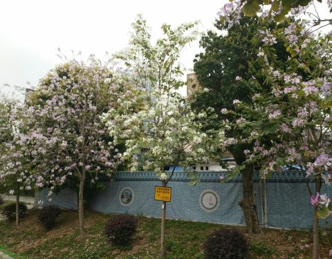...是路旁的参天大树,夏天极其阴凉,春天满地黄叶,可惜去年台风刮倒太多,为了安全每棵树就留下三几米