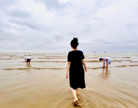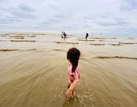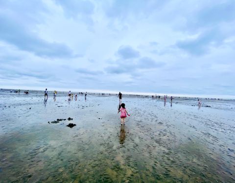 去年老公带女儿来过一次,可惜我没来过,今年必须打卡一下啦!赶着阴天☁️来打卡,不然估计要被晒死在沙滩🏖️上。停车🅿️场距离沙滩还是炒鸡方便的,停车费价格也很合理。步行几分钟就到沙滩啦~免费🆓的沙滩喔!去的时候正好已经退潮一段时间了。漫步在泥泞中,也别有风味。女儿玩的很开心,对于我这样有洁癖的人来说也算放飞自我,豁出去了。