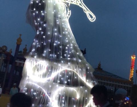 听上去总是人气满满的感觉! 整个绿地一到晚上,就是周边居民遛弯的地方,有人专门爱在里面练习乐器