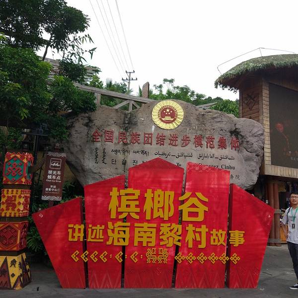 ...槟榔谷,因为交通不便报个一日游很省事的,这里主要以黎族的特色为主,还有很多卖银器的,手工制品的