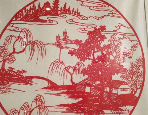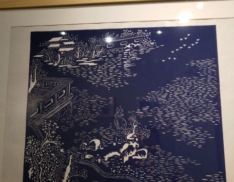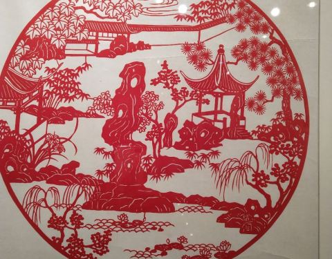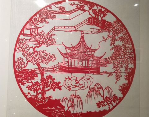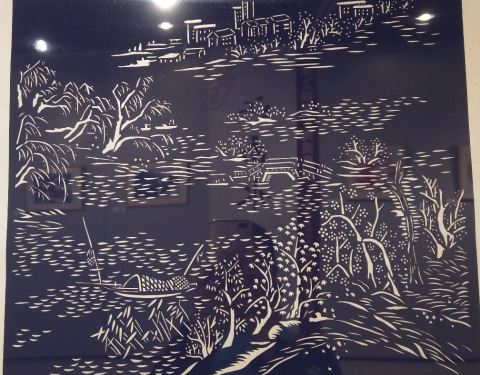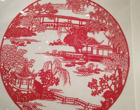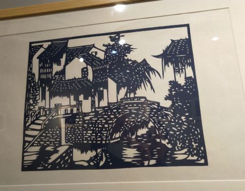 闵行区群众艺术馆,每次开车经过,只能望馆兴叹。这次看到纸上颛溪,海派风情展,特地赶来观看。 苏州园林: 一桥一亭,一花一叶。 一树一草,一石一水。 一瓦一房,一人一船。 前有景,中有人,后有房。 尤是房中人,走到画中央, 春色入眼睑,驻春永相随。 一剪一纸,一思一情。情景合一,一色春意。 群众艺术,君是创意,艺术人众,国色添香。