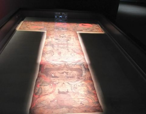 马王堆展示厅。主要以马王堆汉墓为展览展示主题。值得一看。丝织品等文物为主