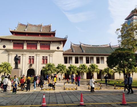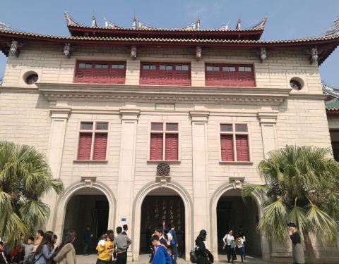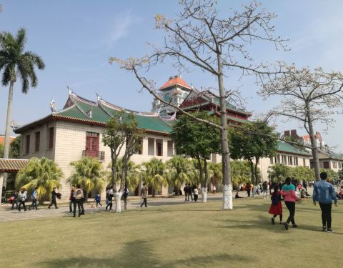 在厦门大学里有一组非常漂亮的教学楼,这里共有三栋楼,一栋是原文学系楼,现为鲁迅纪念馆。中央一栋原为教学主楼,名为集贤楼,现为校史展览馆。
