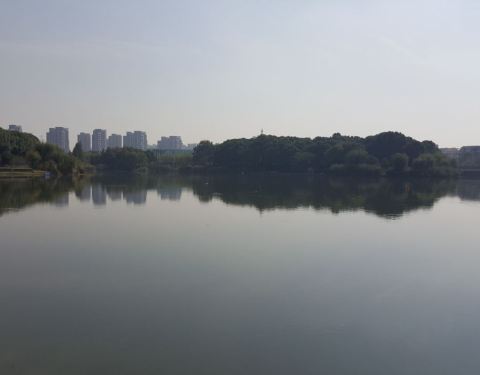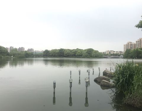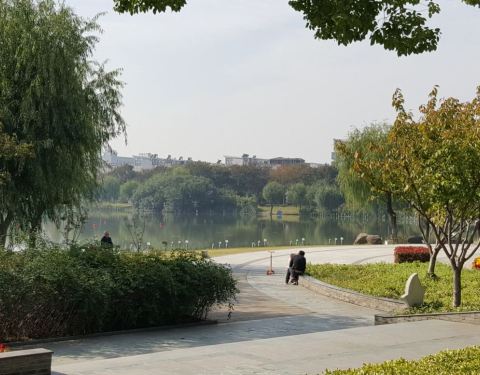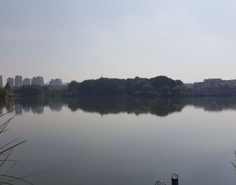 湖泊不大,像个人工湖,风景也一般。不过早上晨练和晚上遛弯正合适,空气清新也不干燥。 湖边也有许多钓鱼爱好者在此垂钓,此外,湖边也设有全民健身步道,老年人可以在此锻炼身体。