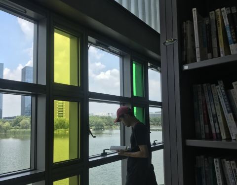开着导航过来,车子停在电信大楼里的停车场然后走过来。水面很大。有许多人还在湖边捕鱼。 看了介绍,原来这湖还是人工湖。既然人工所为,因势利导,沿着湖边,设着绿道,实是健身好去处。 从博物馆或图书馆出来...